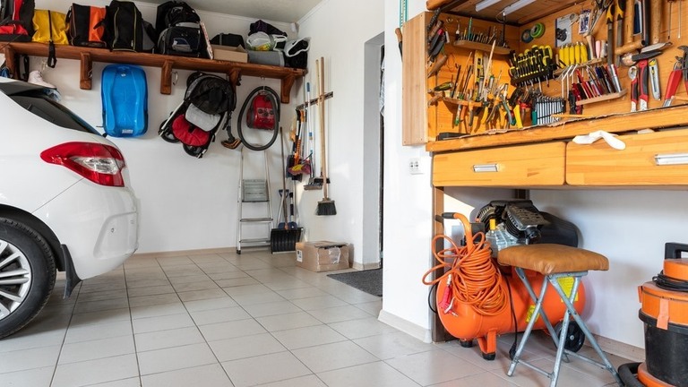 A small workbench in the garage is great for storing things and for working on your DIY projects.