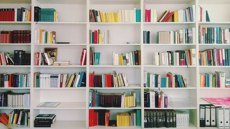 This concept makes efficient use of vertical wall space by utilizing ceiling-height shelves, providing ample storage from floor to ceiling. This is especially advantageous in rooms with limited floor space and a large blank wall. However, implementing this idea necessitates the addition of a rolling ladder to access items positioned at higher levels effectively.