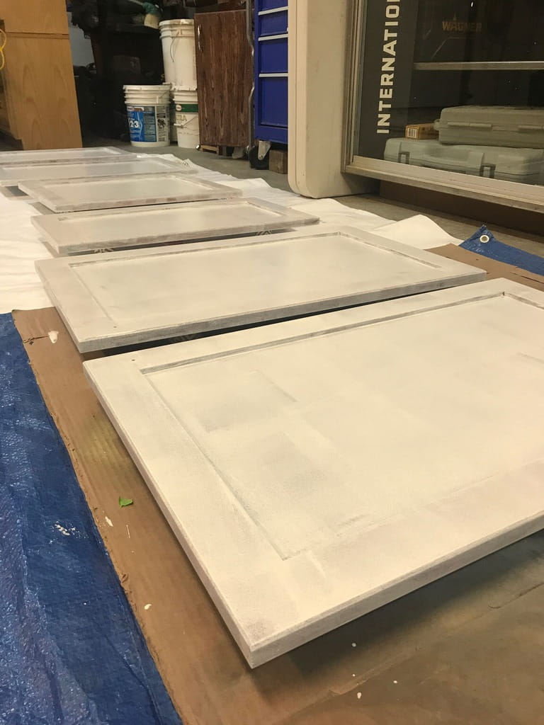 1. Thoroughly clean, sand, and de-grease cabinets before painting.