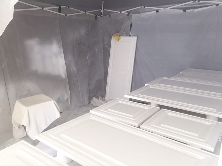 When it comes to painting kitchen cabinets, find a clean environment where dust and dirt won't settle on your wet-painted kitchen cabinets, resulting in a smoother finish. It is also very important to choose a dry area that helps not only the paint adhere better but also prevents issues such as peeling or bubbling. Finally, good ventilation matters! Choose a space that reduces those pesky paint fumes. Your lungs will thank you.